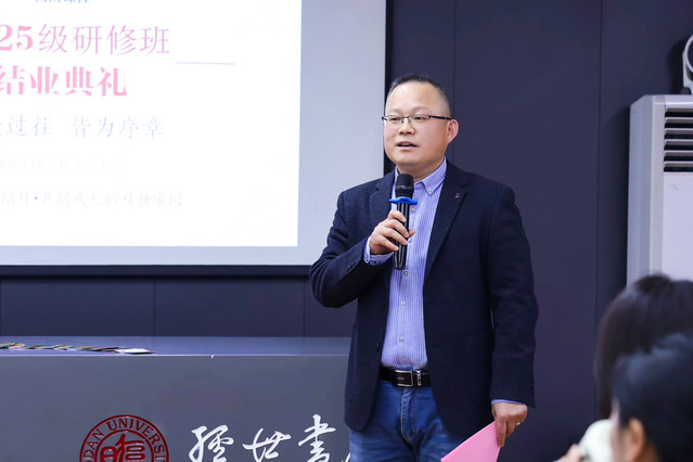 周双丽处长对全体学员顺利结业表示衷心祝贺。她结合自己参加心理学培训的亲身经历,表达了与大家同行的亲切感。她指出,社会发展与公共政策学院始终立足文科优势,致力于推动学科交叉与社会服务融合,而复旦大学心理学科更承载着百年的学术积淀,持续以扎实的学科根基回应时代课题与社会需求。通过半年系统学习,在学界与业界名师的前沿引领下,大家不仅充分汲取复旦大学深厚的人文社科学术滋养,深化了理论认知,更获得超越课堂的思维启迪与实践智慧。最后,周处长勉励全体学员,将所学所感转化为推动工作进步的坚实力量,在未来道路上持续成长、勇毅前行,成为心理学应用领域的点亮者与引领者。