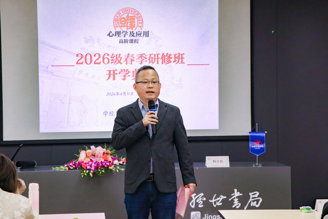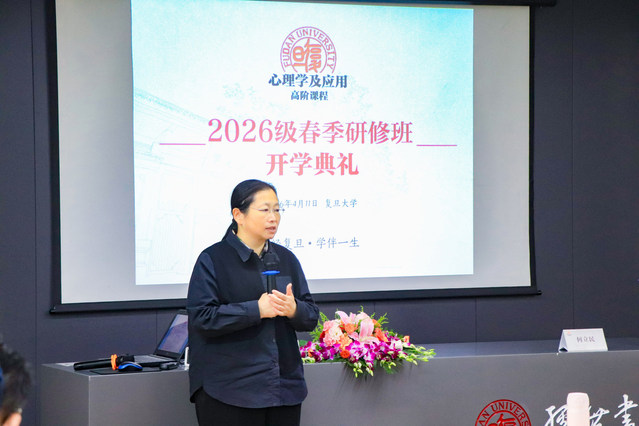 郭秀艳教授在致辞中谈到,现代心理学以科学方法探究人类心理与行为规律,为理解复杂社会现象、洞察人性本质提供理论支撑与实践方案。她指出,本期春季研修班立足复旦心理学科百年积淀,聚焦前沿应用与实践能力提升,旨在汇聚追求自我成长与专业精进的时代学子重返校园,从心灵出发探索人性、以人本视角追寻生命价值。她衷心祝愿全体学员在课程中学有所获、学有所成,在复旦收获专业成长与心灵滋养。