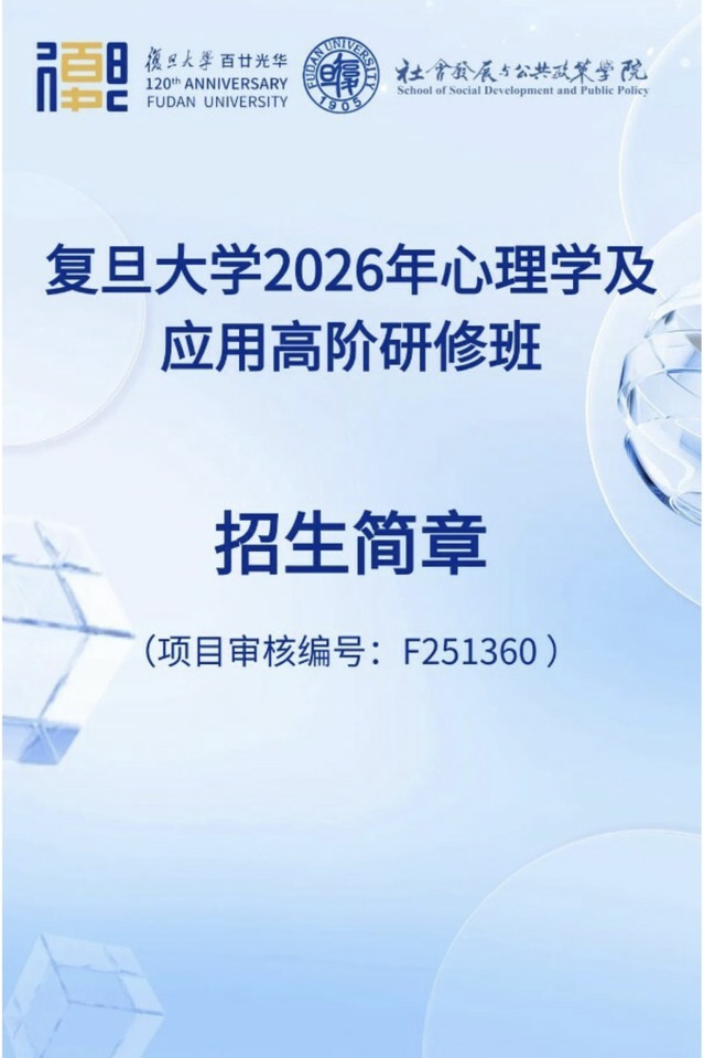 “心理学及应用高阶”研修项目(@“SSDPPLEO”微信公众号)及心理学类研修培训项目相关信息,详见复旦大学社会发展与公共政策EDP及培训中心网站(https://www.rcfz.fudan.edu.cn/7241/list.htm),感谢您关注,欢迎您垂询。